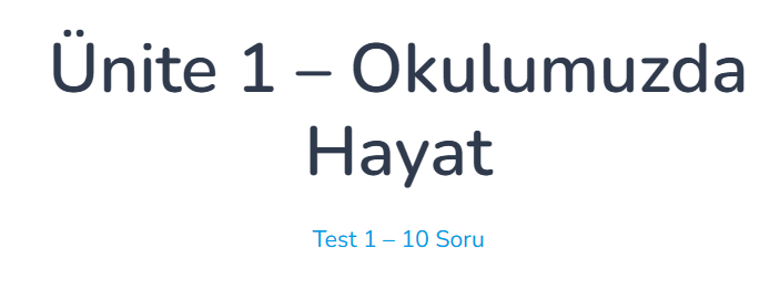 Ünite 1 - Test 1 Testi Gör Ünite 1 - Test 2 Testi Gör Ünite 1 - Test 3 Testi Gör Ünite 1 - Test 4 Testi Gör Ünite 2 - Test 1 Testi Gör Ünite 2 - Test 2 Testi Gör Ünite 2 - Test 3 Testi Gör Ünite 2 - Test 4 Testi Gör Ünite 3 - Test 1 Testi Gör Ünite 3 - Test 2 Testi Gör Ünite 3 - Test 3 Testi Gör Ünite 3 - Test 4 Testi Gör Ünite 4- Test 1 Testi Gör Ünite 4- Test 2 Testi Gör Ünite 4- Test 3 Testi Gör Ünite 4- Test 4 Testi Gör